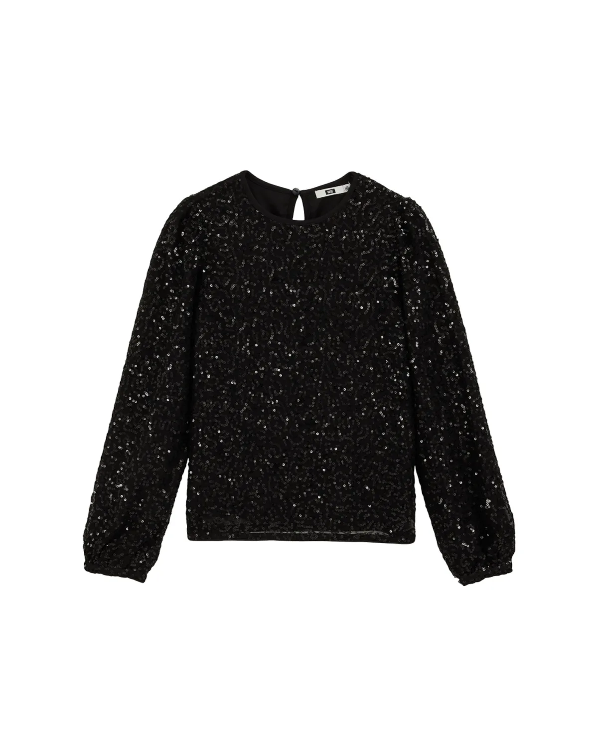 Design: Elastische taille/zoom; Type sluiting: Knoopsluiting; Materiaal: Gerecycled materiaal; Halstype: Ronde hals; Motief: Effen; Details: Cut-outs, Pailletten; Extra's: Op staal naden; Pasvorm: Normale pasvorm; Armlengte: Lange mouw; Lengte: Normale lengte