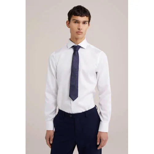 Dit slim fit overhemd is gemaakt van luxe katoen en heeft een ingeweven structuur, knoopsluiting, lange mouwen, verstevigde spread-collar en manchetten. Dankzij de tijdloze looks van het item, is deze geschikt voor elke gelegenheid.