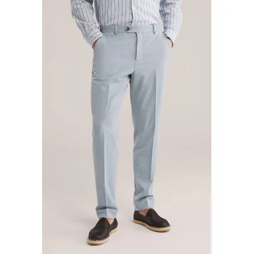 Netjes gekleed zonder in te leveren op comfort, dat is precies wat deze WE Fashion slim fit herenpantalon biedt. De pantalon in de kleur Blue Flint heeft een moderne, slanke pasvorm met smalle pijpen en sluit met een combinatie van rits, haak en knoop. De stof voelt soepel aan, beweegt makkelijk met je mee en blijft toch mooi in vorm. Ideaal als je er verzorgd uit wilt zien tijdens een lange werkdag of een avond uit. Model draagt maat 48 en is 1.88 meter lang.Praktische details voor elke dagSlim fit model met smalle pijpen voor een moderne, aangesloten lookSluiting met rits, haak en knoop voor een nette afwerking in de tailleTwee steekzakken voor en twee achterzakken met knoopGemaakt van 64% polyester, 32% viscose en 4% elastaan voor soepel draagcomfortEffen kleur Blue Flint, makkelijk te combineren met overhemden, truien en T-shirtsVan meeting tot borrelDeze pantalon past bij veel momenten op een dag. Combineer met een overhemd voor een representatieve kantooroutfit of draag een fijngebreide trui voor een wat meer ontspannen uitstraling. De comfortabele stof en de nette afwerking maken de broek geschikt voor zowel formele als informele gelegenheden.WE Fashion, vertrouwd en eigentijdsWE Fashion staat voor toegankelijke, goed doordachte mode. De collecties zijn gemaakt om makkelijk te combineren, zodat je met een paar sterke items steeds nieuwe outfits samenstelt. Met deze pantalon haal je een betrouwbare basis in huis waar je vaak naar grijpt.Een stijlvolle broek die jouw dagelijkse garderobe moeiteloos compleet maakt.