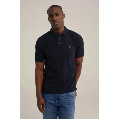Een slim fit polo van pique katoen met structuur en een knoopsluiting. Het model heeft een polokraag en korte mouwen. Op de borst staat ons signature logo: de geborduurde zwaluw.