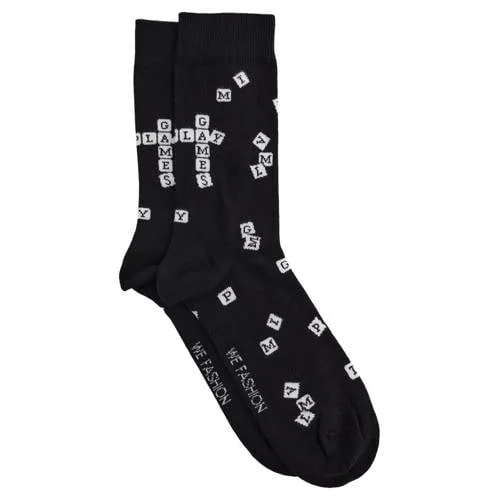 Geef je dagelijkse outfit net wat extra karakter met deze heren sokken van WE Fashion. De Scrab sock is uitgevoerd in zwart met een subtiele all over print, waardoor de sok rustig oogt maar toch iets speels houdt. Ideaal voor onder je nette broek naar kantoor, maar ook prima te dragen in je vrije tijd met je favoriete jeans en sneakers. De zachte stof met lichte stretch sluit prettig om je voet en blijft mooi in vorm.Kenmerken van de Scrab sock Zwarte sok met all over print voor een moderne, maar rustige uitstraling Gemaakt van katoen met stretch voor een zachte touch en een comfortabele pasvorm Elastische boord die goed aansluit zonder te knellen Geschikt voor dagelijks gebruik uit de WE Fashion Daily collectie Per stuk verpakt, handig als je een favoriet paar wilt vervangen of aanvullenAltijd passend in je garderobeDe Scrab sock past bij veel verschillende looks. Onder een chino of pakbroek valt de print rustig weg, terwijl hij in combinatie met opgerolde jeans net iets meer mag opvallen. Een praktische sok voor iedereen die graag kiest voor een basic met een klein detail.WE Fashion, stijl voor elke dagWE Fashion is een bekend merk in de herenmode en staat voor eigentijdse kleding met aandacht voor draagcomfort en pasvorm. De collecties zijn ontworpen om makkelijk te combineren, zodat je met een paar goede basics steeds weer nieuwe outfits samenstelt. Met deze sok kies je voor een vertrouwd merk dat weet wat je dagelijks nodig hebt.Een sok die je keer op keer met gemak uit de lade pakt.