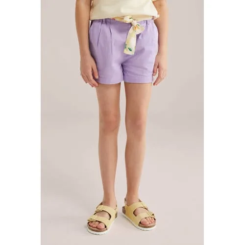 Zonnige dagen vragen om luchtige basics zoals deze meisjes short van WE Fashion. De short heeft een relaxed fit, wat zorgt voor een comfortabele, iets ruimere pasvorm waarin zij vrij kan bewegen. De zachte, lila kleur geeft direct een speelse uitstraling. Gemaakt van 100% katoen voelt het materiaal soepel aan op de huid, ideaal voor dagelijks gebruik.Handige details voor elke dag Gemaakt van 100% katoen voor een zachte, ademende feel Elastische tailleband voor gemakkelijk aan- en uittrekken Rechte pijpen voor een ontspannen, casual look Steekzakken aan de voorkant voor kleine schatten of handige opbergruimte Lintceintuur met fruitprint als kleuraccent Wordt geleverd met bijpassend sjaaltjeLuchtig gemak voor speel- en schooldagenDeze korte broek past goed bij het dagelijkse leven van peuters, kleuters, schoolkinderen en tieners. Of ze nu speelt in de tuin, een dag naar school gaat of meegaat naar de stad, de elastische taille en de rechte pijpen geven haar genoeg bewegingsvrijheid. In de zakken kan zij makkelijk kleine spulletjes kwijt.WE Fashion voor het hele gezinWE Fashion staat voor toegankelijke mode voor het hele gezin, met collecties die goed aansluiten op het dagelijks leven. De kinderkleding is ontworpen met aandacht voor pasvorm, draaggemak en heldere kleuren. Zo combineert WE Fashion praktische details met een moderne, herkenbare stijl.Een vrolijke basic voor haar kast, geschikt voor dagelijks gebruik.