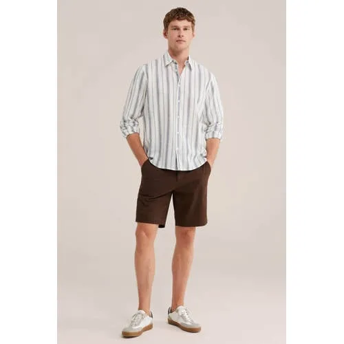 Deze katoenen chino short voor heren van WE Fashion is een praktische keuze voor warme dagen. De korte broek heeft een donkerbruine Dark Roast kleur die goed combineert met T-shirts, polo's en overhemden. De twillkwaliteit voelt stevig en toch soepel aan door het kleine percentage stretch, zodat je je gemakkelijk kunt bewegen.Dagelijks draaggemak Gemaakt van katoen met 3% elastan voor een comfortabele, lichte stretch Straight fit voor een rechte, tijdloze pasvorm langs het been Rits- en knoopsluiting die netjes oogt en praktisch is in gebruik Effen ontwerp in de kleur Dark Roast, eenvoudig te combineren Handige zakken voor en achter voor sleutels, telefoon en portemonnee Chino model dat zowel casual als wat gekleder gedragen kan wordenVan werkdag tot weekendDeze chino short is geschikt voor veel momenten. Combineer met een basic T-shirt en sneakers voor een ontspannen dag, of draag een polo en nette schoenen voor een luchtige, verzorgde outfit. Door de rechte pasvorm en het effen ontwerp past de korte broek goed bij zowel vrije tijd als een informele werkdag.WE Fashion als vertrouwde keuzeWE Fashion biedt moderne kleding met een toegankelijke stijl voor elke dag. De collecties zijn ontworpen om onderling te combineren, zodat je met een paar kledingstukken meerdere outfits kunt maken. Met deze chino short voeg je een helder basisstuk toe aan je garderobe.Een doordachte korte broek die zorgt voor overzicht in je kledingkast.