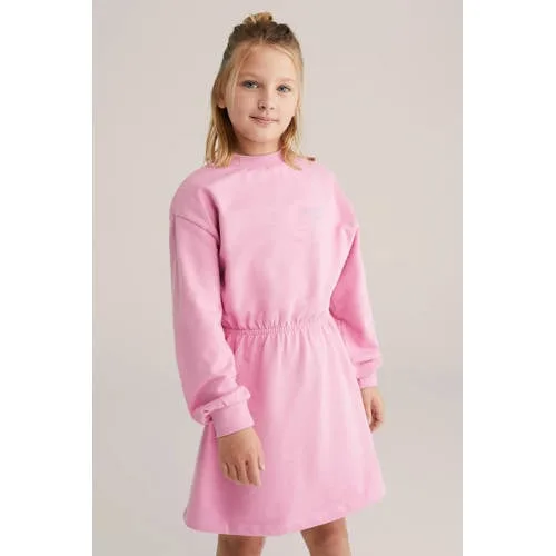 Op zoek naar iets tussen casual en gekleed voor je dochter? Deze WE Fashion sweatjurk combineert het gemak van een trui met de uitstraling van een jurk. De roze kleur zorgt voor een frisse, zachte look en door het comfortabele model is dit een praktische keuze voor schooldagen, speelafspraken en ontspannen weekenden. De sweatstof voelt zacht aan op de huid, zodat de jurk prettig draagt, ook als zij de hele dag in beweging is.Comfortabele details voor elke dag Gemaakt van 100% katoen voor een zachte, ademende stof Ronde hals en lange rechte mouwen voor een comfortabele pasvorm Taille-elastiek voor een subtiel geaccentueerde taille en extra draaggemak Effen roze kleur met print op de borst Geribde, elastische boorden zodat de mouwen goed blijven zitten Zonder sluiting, waardoor de jurk eenvoudig aan en uit gaatIdeaal op dagen dat jurken net wat te netjes voelenDeze sweatjurk is handig voor momenten waarop een gewone jurk te chic voelt, maar een simpele trui net niet genoeg is. Ze trekt de jurk zo over het hoofd, combineert hem met sneakers of laarsjes en is klaar om te gaan spelen, leren of relaxen.WE Fashion voor het hele gezinWE Fashion staat bekend om moderne, toegankelijke kleding voor het hele gezin. De collecties sluiten aan op het dagelijkse leven, met items die prettig zitten en er verzorgd uitzien. Zo krijgt je kind kleding waarop je kunt vertrouwen, in een stijl die bij nu past.Een zachte en praktische jurk die het aankleden op drukke dagen net even makkelijker maakt.
