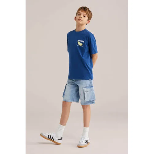 Klaar voor zonnige dagen en speelplezier, dit donkerblauwe WE Fashion T-shirt voor jongens is een basic met een opvallende rugprint. Het shirt heeft een regular fit, korte mouwen en een ronde hals. Op de borst staat een kleine print en op de rug komt dezelfde afbeelding groot terug, bijvoorbeeld een chilipeper, sinaasappel of ananas. Zo blijft de voorkant rustig en valt de backprint extra op zodra hij zich omdraait.Details die het verschil maken Regular fit voor een comfortabele pasvorm met genoeg bewegingsruimte Donkerblauwe kleur die goed te combineren is met shorts, jeans of een jogpant Korte mouwen, geschikt voor warme dagen of onder een vest Ronde hals die prettig aansluit zonder strak te zitten Kleine print op de borst en grote backprint met bijvoorbeeld chilipeper, sinaasappel of ananas Gemaakt van 100% katoen dat zacht aanvoelt op de huid Verpakking met 1 T-shirt, ideaal als losse aanvulling in de kledingkastVoor school, vakantie en speelmomentenDit T-shirt past goed bij alledaagse activiteiten, van school tot speeltuin en vakantie. Het katoen voelt prettig aan tijdens actief spelen en de opvallende rugprint zorgt voor een herkenbare look op foto’s en tijdens uitstapjes.WE Fashion als keuze voor elke dagWE Fashion ontwerpt toegankelijke kleding met een pasvorm die geschikt is voor kinderen. De collectie sluit aan op wat kinderen graag dragen en wat ouders praktisch vinden in het dagelijks leven.Een T-shirt dat vaak van pas komt op zomerse dagen en makkelijk te combineren is met de rest van de kledingkast.