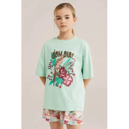WE Fashion Meisjes oversized Tshirt met print Oversized Mintgroen Katoen