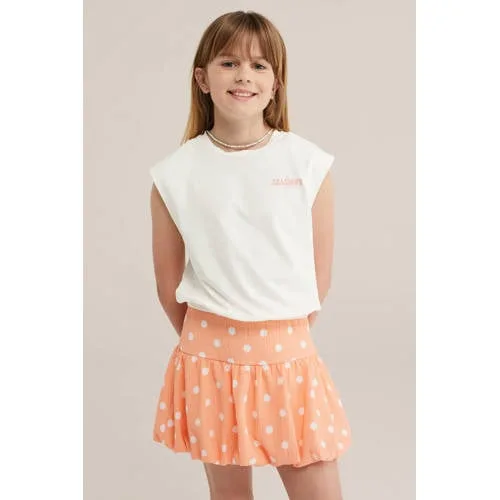 Meer print, meer plezier in de kledingkast met dit wit T-shirt voor meisjes. Het model heeft een regular fit met een ronde hals en korte kapmouwen, ideaal voor speelse dagen. Voorop staat een kleine zomerse print, terwijl op de rug een grote backprint zorgt voor een verrassend detail. De elastische onderkant geeft het shirt een blousend effect dat luchtig valt en een speelse vorm creëert.Speelse details voor elke dag Gemaakt van 100% katoen, dat zacht aanvoelt op de huid Regular fit met ronde hals voor comfortabel draaggemak Korte kapmouwen die net wat meer vorm geven dan een standaard mouw Kleine zomerse print op de borst en grote backprint op de rug Elastische boord onderaan voor een speels, licht blousend effectIdeaal voor school, spelen en vakantieDit shirt past gemakkelijk in de dagelijkse garderobe. De luchtige katoenkwaliteit is geschikt voor warme dagen en het shirt is eenvoudig aan en uit te trekken.WE Fashion: eigentijdse stijl voor kidsWE Fashion staat bekend om moderne, goed doordachte basics en vrolijke prints voor kinderen. De collecties sluiten aan op het dagelijkse leven, met kleding die comfortabel zit en er verzorgd uitziet. Zo kies je voor een betrouwbare stijl die je kind graag draagt.Een zomers shirt dat klaar is voor elke speelse dag.