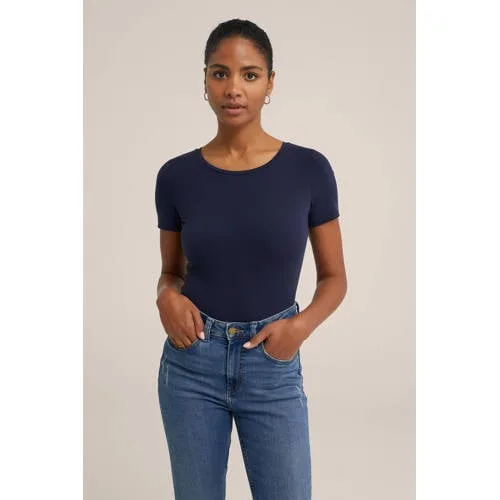 - Bij wefashion.com kun je WE Fashion - Dames T-shirt van katoenmix - Slim Fit - Donkerblauw - Katoen - kopen voor slechts €18,00