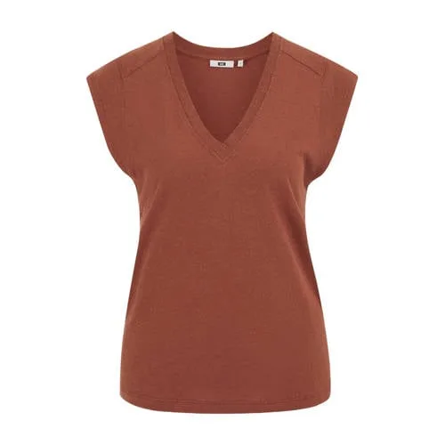 Fris je zomergarderobe op met het WE Fashion Lizzy Linen blend singlet in warm roodbruin. Dit mouwloze T-shirt heeft een verfijnde V-hals en een rechte, ontspannen pasvorm. De combinatie van linnen en katoen zorgt voor een luchtige top die prettig aanvoelt op warme dagen en makkelijk te combineren is met jouw favoriete jeans, rok of short.Verfijnde basis voor elke dag Luchtige kwaliteit dankzij het gebruik van 55% linnen en 45% katoen Mouwloos model dat veel bewegingsvrijheid geeft, ideaal voor de zomer V-hals die de halslijn subtiel accentueert Effen roodbruine kleur die eenvoudig te stylen is Rechte mouwinzet voor een rustige, tijdloze look Geschikt als solo top of onder een vest of blouseComfortabel in het dagelijks levenDit singlet komt uit de Daily collectie en is ontworpen voor dagelijks dragen. De stof voelt soepel aan op de huid en blijft dankzij de mix van linnen en katoen prettig ademen, ook als de temperatuur oploopt. Draag het met een lichte broek en sandalen voor een zomerse dag of onder een openvallend overhemd voor een meer gelaagde look.WE Fashion, vertrouwd en stijlvolWE Fashion staat bekend om moderne basics en eigentijdse items die lang mee kunnen in je garderobe. De collecties worden ontworpen met aandacht voor pasvorm, draaggemak en een heldere stijl. Met dit singlet kies je voor een betrouwbaar merk dat al jaren een vaste waarde is in de wereld van damesmode.Een veelzijdige zomertop die je snel uit de kast pakt voor een comfortabele en verzorgde look.