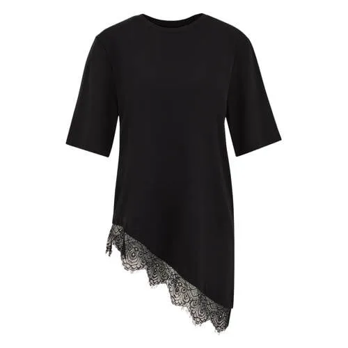 - Bij wefashion.com kun je WE Fashion - Dames asymmetrisch jersey T-shirt met kant - Regular fit - Zwart - Viscose - kopen voor slechts €29,00