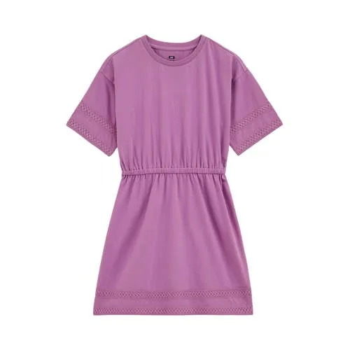 Deze katoenen T-shirtjurk voor meisjes van WE Fashion in de kleur Lavender Crystal is een zachte, luchtige basic voor elke dag. De effen lila tint oogt rustig en fris, terwijl de subtiele borduursels een speels accent geven. De soepele single jersey voelt prettig aan op de huid, zodat je kind zich vrij kan bewegen tijdens spelen, leren en relaxen.Lichte jurk met fijne details Gemaakt van zachte katoenen single jersey, comfortabel voor de gevoelige kinderhuid Korte mouwen en ronde hals, ideaal voor warmere dagen of met een vestje erover Elastische tailleband voor een goede pasvorm en makkelijk aan- en uittrekken Effen ontwerp met borduursels voor een rustig maar verzorgd geheel Korte jurk in T-shirtstijl, geschikt voor peuters, kleuters, schoolkinderen en tienersVoor school, thuis en daarbuitenDe jurk past goed in het dagelijkse leven. Combineer met sneakers voor school of een dagje uit, of draag er sandalen onder op warmere dagen. De rechte mouwen en het ontbreken van zakken zorgen voor een rustige look en maken de jurk extra licht en soepel.WE Fashion voor kinderenWE Fashion ontwerpt kinderkleding die prettig zit en er modern uitziet. De collecties zijn afgestemd op het dagelijkse leven van actieve kinderen, met aandacht voor pasvorm, draaggemak en heldere kleuren. Zo kies je voor kleding waar kinderen zich de hele dag fijn in voelen.Een praktische, zachte jurk die elke dag weer uit de kast gepakt kan worden.