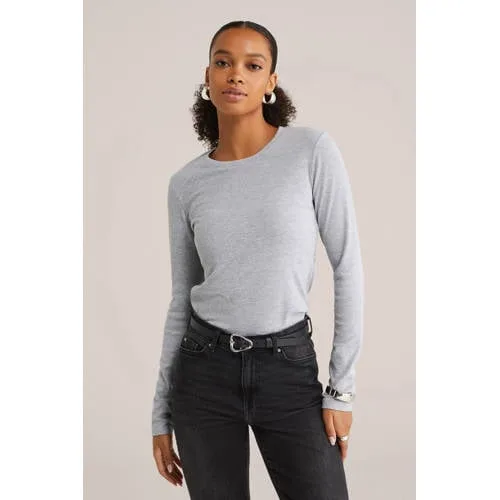 - Bij wefashion.com kun je WE Fashion - Dames T-shirt van ribstof - Lichtgrijs - Katoen - kopen voor slechts €20,00