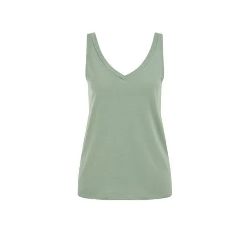 Voor een frisse, dagelijkse look is deze lichtgroene dames top met V-hals een basic in je garderobe. De zachte kleur past mooi bij zowel lichte als donkere onderstukken en is geschikt voor zonnige dagen. De top is mouwloos en heeft een V-hals die subtiel je hals en decolleté accentueert, zonder te diep te vallen.Details die je elke dag aantrekt Mouwloos model, fijn voor warme dagen of onder een vest of blazer V-hals voor een open en luchtig effect Effen lichtgroene kleur die makkelijk te combineren is Gemaakt van katoen met een soepele, gladde touch Serie: 'Daily', geschikt als basis in je zomergarderobe Geschikt voor standaardmaten, met een comfortabele pasvormVeelzijdig in je zomerse outfitsDeze top draag je eenvoudig op een jeans, linnen broek of luchtige rok. Voor overdag combineer je hem met sneakers en een lichte cardigan, op warme avonden staat hij mooi op een short met sandalen. Door het effen design past hij ook goed onder een open blouse of jasje.WE Fashion, vertrouwd voor elke dagWE Fashion staat bekend om moderne kleding met een toegankelijke stijl. De collecties sluiten aan op het dagelijkse leven, met items die je makkelijk combineert en vaak draagt. Je kiest voor een merk dat trends vertaalt naar draagbare ontwerpen voor nu.Een eenvoudige, lichtgroene top die je zomerse outfits op een ontspannen manier compleet maakt.