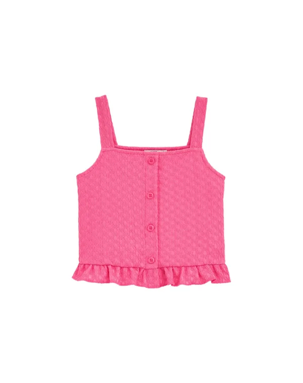 Design: Gevoerde zoom/rand, Knop placket; Type sluiting: Knoopsluiting; Materiaal: Gerecycled materiaal; Halstype: Carréhals; Motief: Effen; Soort bandjes: Normale bandjes; Details: Ruches; Extra's: Op staal naden, Met textuur; Pasvorm: Slanke pasvorm; Armlengte: Mouwloos; Lengte: Normale lengte