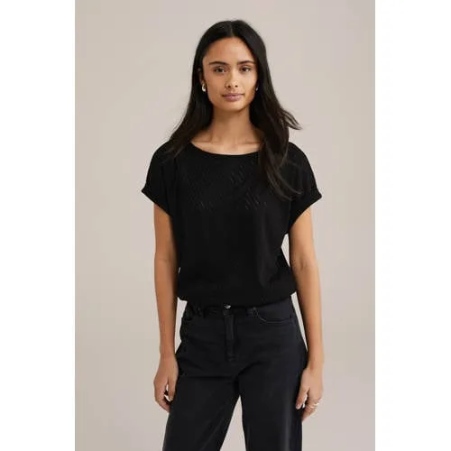 - Bij wefashion.com kun je WE Fashion - Dames T-shirt met opengewerkte structuur - Regular fit - Zwart - kopen voor slechts €34,00