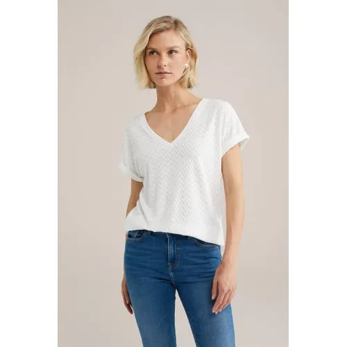 Van veelzijdige kledingitems moet je het hebben. Dit regular fit T-shirt van jerseykwaliteit heeft een opengewerkt dessin, V-hals en korte mouwen. Het item is moeiteloos te stylen en hoort thuis in iedere garderobe.