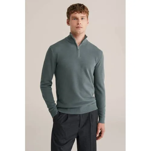 Design: Geribd ceintuurtje, Staande kraag, Halve rits; Type sluiting: Ritssluiting; Materiaal: Knitwear; Halstype: Schipperskraag; Motief: Effen; Extra's: Fully fashioned, Voelt zacht aan; Pasvorm: Normale pasvorm; Armlengte: Lange mouw