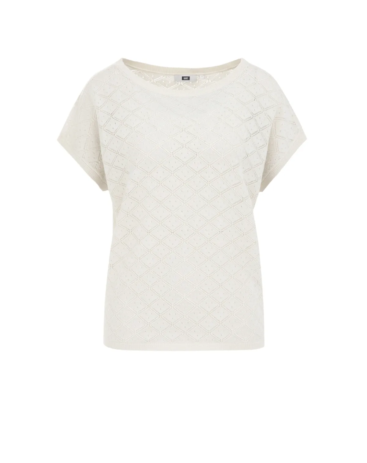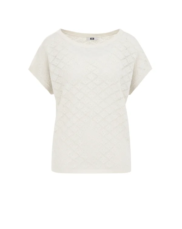 Design: Geribd ceintuurtje; Materiaal: Knitwear; Halstype: Ronde hals; Motief: Effen; Details: Mesh; Extra’s: Fully fashioned; Pasvorm: Losse pasvorm; Armlengte: Kwartmouw; Lengte: Normale lengte