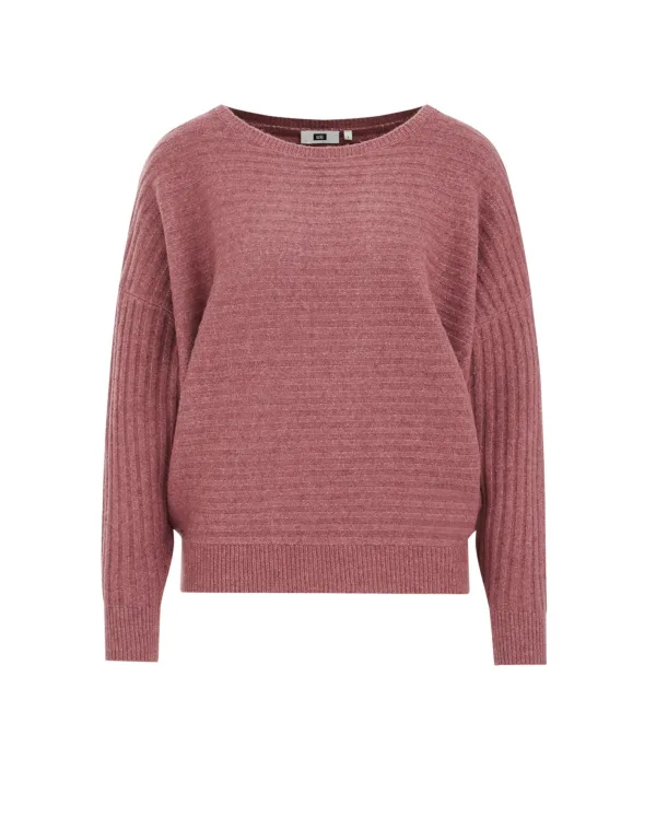 Design: Geribd ceintuurtje; Materiaal: Knitwear; Halstype: Boothals; Motief: Mélange; Extra's: Fully fashioned; Pasvorm: Wijde pasvorm; Armlengte: Lange mouw; Lengte: Normale lengte