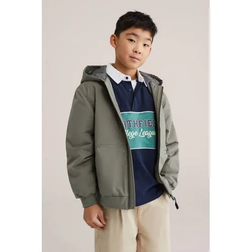 Klaar voor buitenavonturen, op het schoolplein of in het park, met dit groene WE Fashion bomberjack jongens. De jas heeft een regular fit en valt daardoor comfortabel over een T-shirt of trui. Door de capuchon en de praktische ritssluiting is je kind snel klaar om naar buiten te gaan, ook als het weer wat wisselvallig is. De lange mouwen met elastische boorden sluiten mooi aan en helpen de warmte beter vast te houden.Praktische details voor elke dag Regular fit, ideaal om over verschillende lagen kleding te dragen Capuchon voor extra bescherming tegen wind en lichte regen Ritssluiting over de hele lengte voor makkelijk aan- en uittrekken Lange mouwen met geribde boorden voor een goede aansluiting Twee steekzakken aan de voorkant voor kleine spullen of om handen te warmen Handige binnenzak met klittenbandsluiting voor bijvoorbeeld een sleutel of pasje Tussenjas, perfect voor het lente seizoen en frisse dagen tussendoor Groene kleur die eenvoudig te combineren is met jeans, joggingbroeken en sneakersIdeaal als tussenjas voor actieve dagenDeze tussenjas is geschikt voor dagelijks gebruik, van naar school fietsen tot buitenspelen na het eten. De jas biedt genoeg warmte in het voorjaar en op koelere dagen, zonder te zwaar aan te voelen. Door de vele zakken kan je kind belangrijke spulletjes dicht bij zich houden tijdens het spelen of onderweg.WE Fashion voor moderne kidsWE Fashion staat bekend om eigentijdse kleding met aandacht voor pasvorm en draaggemak. De kindercollecties zijn afgestemd op actief gebruik en sluiten goed aan bij het dagelijks leven. Zo draagt je kind een jas met een comfortabele pasvorm die geschikt is voor dagelijks gebruik.Een praktische, alledaagse tussenjas waarmee je kind elke dag comfortabel naar buiten kan, bij wisselvallig weer.