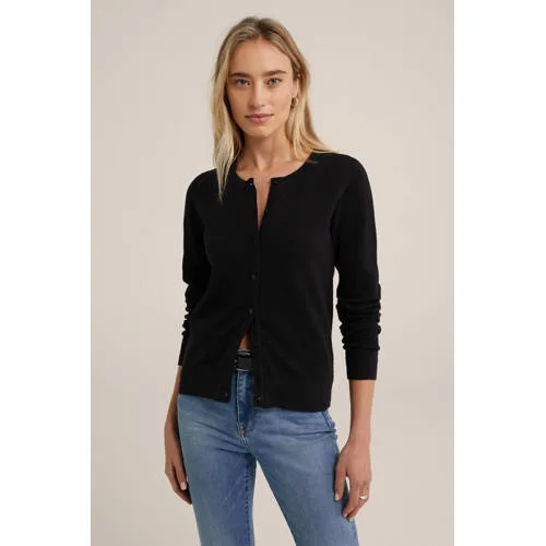 Dit vest voor dames van WE Fashion is gemaakt van katoen (duurzaam). Het model heeft een ronde hals en lange mouwen. Het vest heeft een knoopsluiting.details van vest:• geribde boorden• textuur