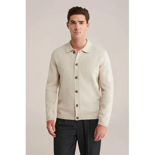 Dit vest van WE Fashion heeft lange mouwen en een klassieke kraag. Dit vest sluit met knopen. Het is fijn gebreid, heeft geribde boorden en is gemaakt van wol.
