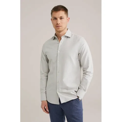 Het soort item dat je collega’s doet denken dat je je leven op orde hebt. Dit overhemd heeft een slim fit pasvorm, een subtiele melange en een verstevigde boord. Ideaal voor een look die chic, maar niet té is.