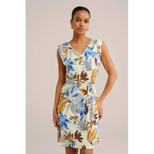 Deze WE Fashion jurk is mouwloos en heeft een V-hals. Gemaakt van viscose, zorgt de korte jurk voor een luchtige uitstraling. De lichtgele kleur en ceintuur maken jouw zomerlook compleet.