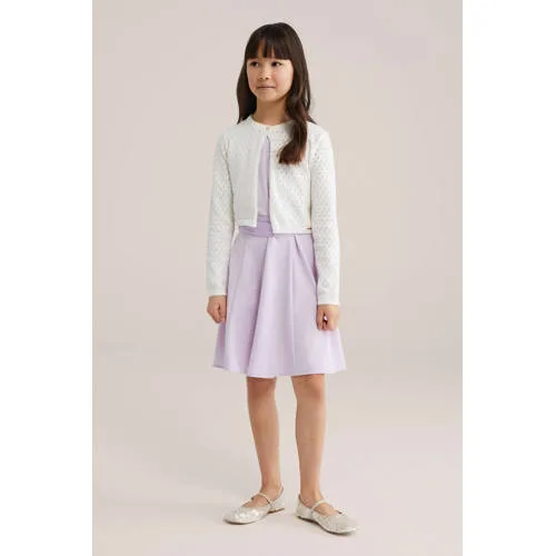 Voor kleine momenten die bijzonder zijn is deze WE Fashion meisjes jurk een passende keuze. De lila kleur geeft direct een frisse, zachte uitstraling en het wijduitlopende model zorgt voor een speelse draai bij iedere stap. Geschikt voor feestjes, familiedagen of gewoon een zonnige dag waarop zij zich graag netjes kleedt.Lichte jurk met sierlijke details Lila jurk met effen kleur voor een rustige uitstraling Mouwloos model, geschikt voor warmere dagen en makkelijk te combineren met een vestje Ronde hals en lage rug met ritssluiting waardoor de jurk eenvoudig aan en uit gaat Strikceintuur in de taille voor een goed aansluitende pasvorm, ideaal voor feestelijke momenten Wijduitlopend rokgedeelte met plooien dat soepel meebeweegt Gemaakt van 63% polyester, 33% viscose en 4% elastaan voor een zachte stof met lichte stretchGeschikt voor speciale gelegenhedenDeze korte zomerjurk past goed bij gelegenheden zoals bruiloften, verjaardagen of schoolfeesten. Door het soepele materiaal en het wijduitlopende model kan zij zich hierin makkelijk bewegen, spelen, rennen en dansen.WE Fashion voor het hele gezinWE Fashion staat bekend om toegankelijke mode met oog voor detail. De collecties voor kinderen sluiten aan bij het dagelijkse gezinsleven, met kleding die er verzorgd uitziet en praktisch is in gebruik. Zo kies je steeds weer voor betrouwbare kwaliteit in een moderne stijl.Een jurk die speciale momenten net dat beetje extra uitstraling geeft.