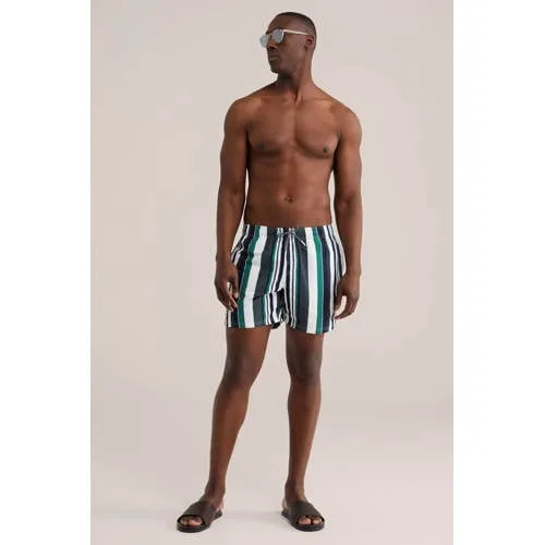 Klaar voor zon, zee en zwembad met deze WE Fashion zwemshort voor heren. De short heeft een regular fit, waardoor hij comfortabel zit zonder te strak aan te sluiten. De elastische tailleband met aantrekkoordjes zorgt ervoor dat de zwembroek goed blijft zitten, of je nu baantjes trekt of met vrienden op het strand bent. De verticale streepprint in groen, wit en zwart geeft een frisse, zomerse uitstraling die direct opvalt.Praktische details voor in en om het water Regular fit voor een comfortabele pasvorm rond heupen en bovenbenen Elastische tailleband met koord voor een verstelbare taille Verticale streepprint in verschillende groentinten, wit en zwart Mesh binnenbroek voor extra draagcomfort Zijzakken voor kleine essentials zoals een sleutel of pasje Geschikt voor zon, zee en zwembad Hygiëne voorschrift: badkleding altijd passen over je eigen ondergoed Handwas, niet strijken en niet drogen in de droogtrommelZwemshort voor vakantie, zwembad en stranddagDeze zwemshort is een fijne basis voor elke zomerse dag. De lichte, soepele stof beweegt gemakkelijk met je mee in het water en droogt weer vlot op als je op je handdoek of ligbed gaat zitten. Dankzij de zijzakken heb je na het zwemmen je kleine spullen snel bij de hand.WE Fashion: eigentijdse mode voor elke dagWE Fashion ontwerpt moderne kleding met aandacht voor pasvorm en details. De collecties sluiten aan op het dagelijks leven, van werk tot vrije tijd. Met deze zwemshort kies je voor een betrouwbare basic die past binnen die toegankelijke, verzorgde stijl.Een zomerse zwemshort waar je de hele dag relaxed in beweegt, van eerste duik tot laatste zonnestraal.