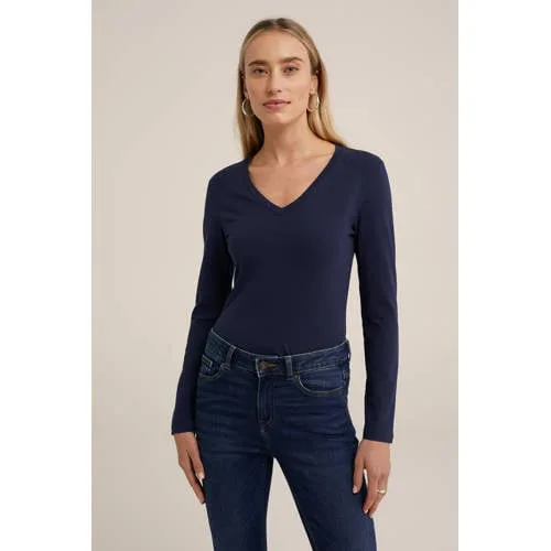 WE Fundamentals basic longsleeve met katoen donkerblauw Prijzen
