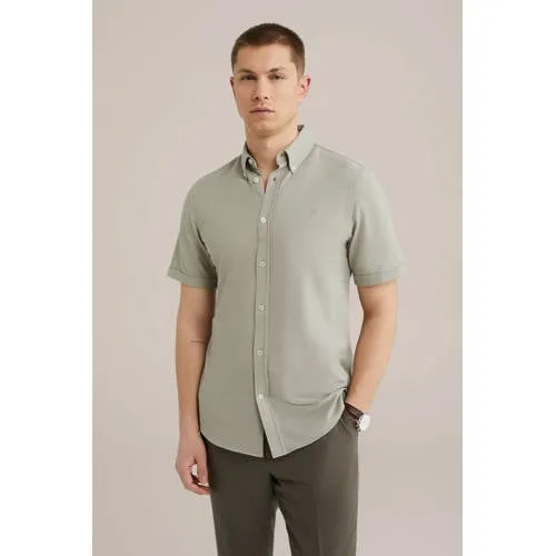 Een slim fit overhemd van een katoenmix met een button-down kraag, korte mouwen, een knoopsluiting en op de borst zit ons signature logo; de geborduurde zwaluw. Dit overhemd heeft het zelfde comfort als een T-shirt en hoeft niet gestreken te worden. Ideaal!