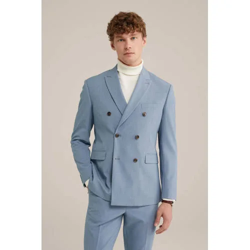 Fundamentals Heren slim fit doublebreasted blazer Slim Fit Grijsblauw