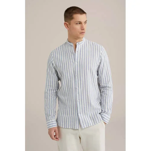 Dit herenoverhemd van WE Fashion heeft een regular fit. Het is gemaakt van een linnen en katoenmengsel. Het overhemd heeft een mao kraag en lange mouwen. De knoopsluiting zorgt ervoor dat het netjes blijft zitten.