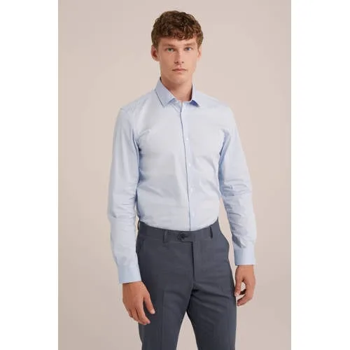 Dit fit overhemd voor heren van WE Fashion is gemaakt van een katoenmix. Het model heeft een klassieke kraag en lange mouwen. Het overhemd heeft een knoopsluiting.