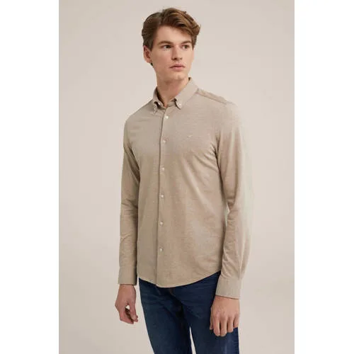 WE Fundamentals slim fit overhemd met stretch sesame