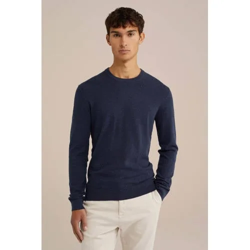 Een fijn gebreide heren trui van WE Fashion. Het model is voorzien van een ronde hals, lange mouwen en geribde boorden.