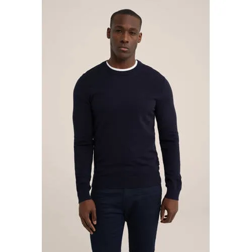 - Bij wefashion.com kun je Fundamentals - Heren Slim fit fijngebreide trui van katoenmix - Slim Fit - Marineblauw - Katoen - kopen voor slechts €25,00