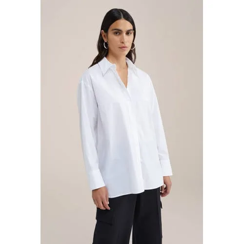 Dit product maakt deel uit van de WE STUDIO-collectie. Deze eigentijdse versie van het klassieke poplin overhemd combineert traditionele stiksels, een stijlvolle kraag en een tijdloze button-down sluiting met een moderne losse en relaxte pasvorm. Het item is gemaakt van biologisch katoen. Draag de blouse eenvoudig met een getailleerde broek of combineer deze met je favoriete kokerrok.