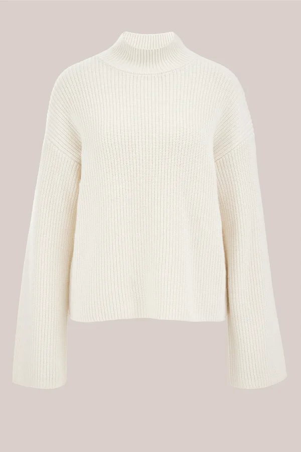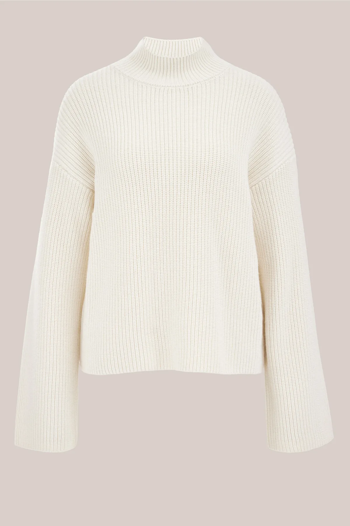 WE Studio – Dames gebreide trui van wolmix – Regular fit – Gebroken wit – Wol – Prijzen
