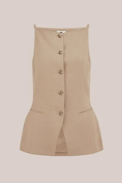WE Studio – Dames THE LINEN GILET – Loose fit – Beige – LENZING™ ECOVERO™ viscose –