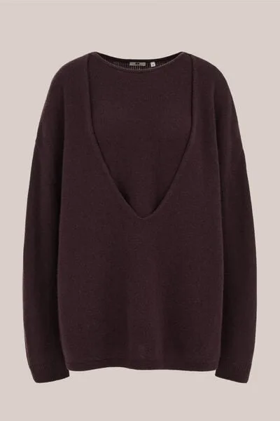 WE Studio – Dames trui met lage V-hals – Regular fit – Aubergine – Wol – Prijzen