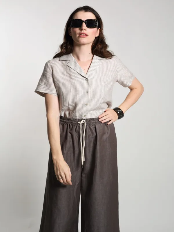Blouse type: Blouseshirt; Materiaal: Linnen; Kraag: Opstaande kraag; Pasvorm: Losse pasvorm; Armlengte: Kwartmouw; Lengte: Normale lengte