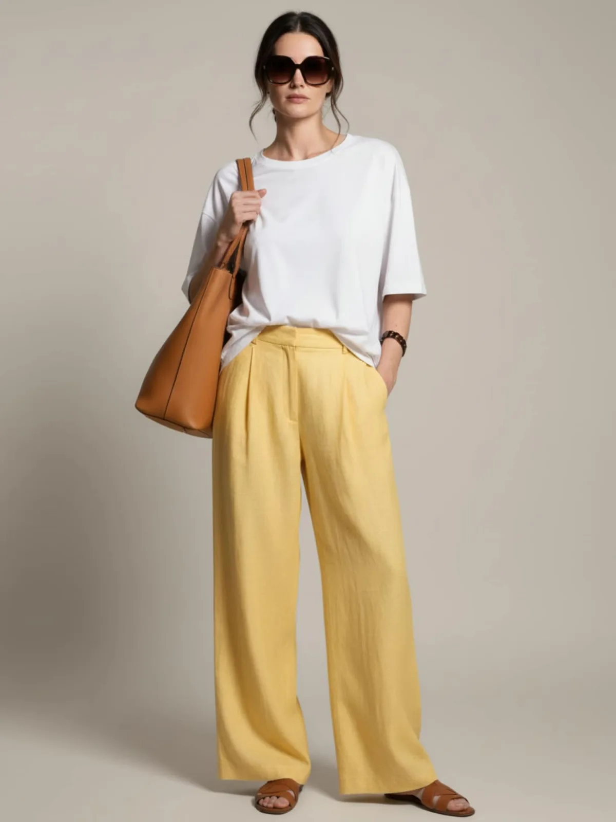 Materiaal: Linnen; Motief: Effen; Details: Plooien; Lengte: Lang/maxi; Pasvorm: Wide leg; Taillehoogte: Mid waist