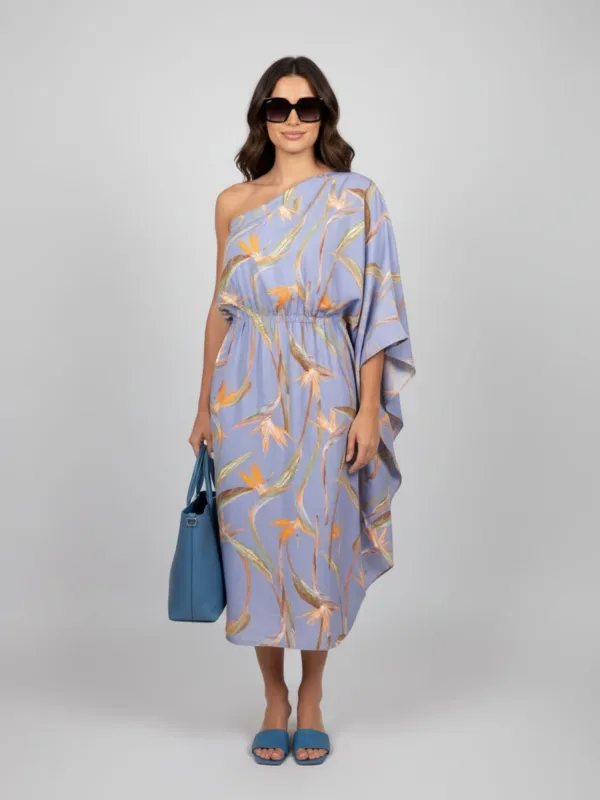 Materiaal: Viscose; Halstype: Carmen hals; Soort bandjes: One-shoulder; Details: Cut-outs; Lengte: 3/4 lengte; Pasvorm: Wijde pasvorm; Armlengte: Mouwloos