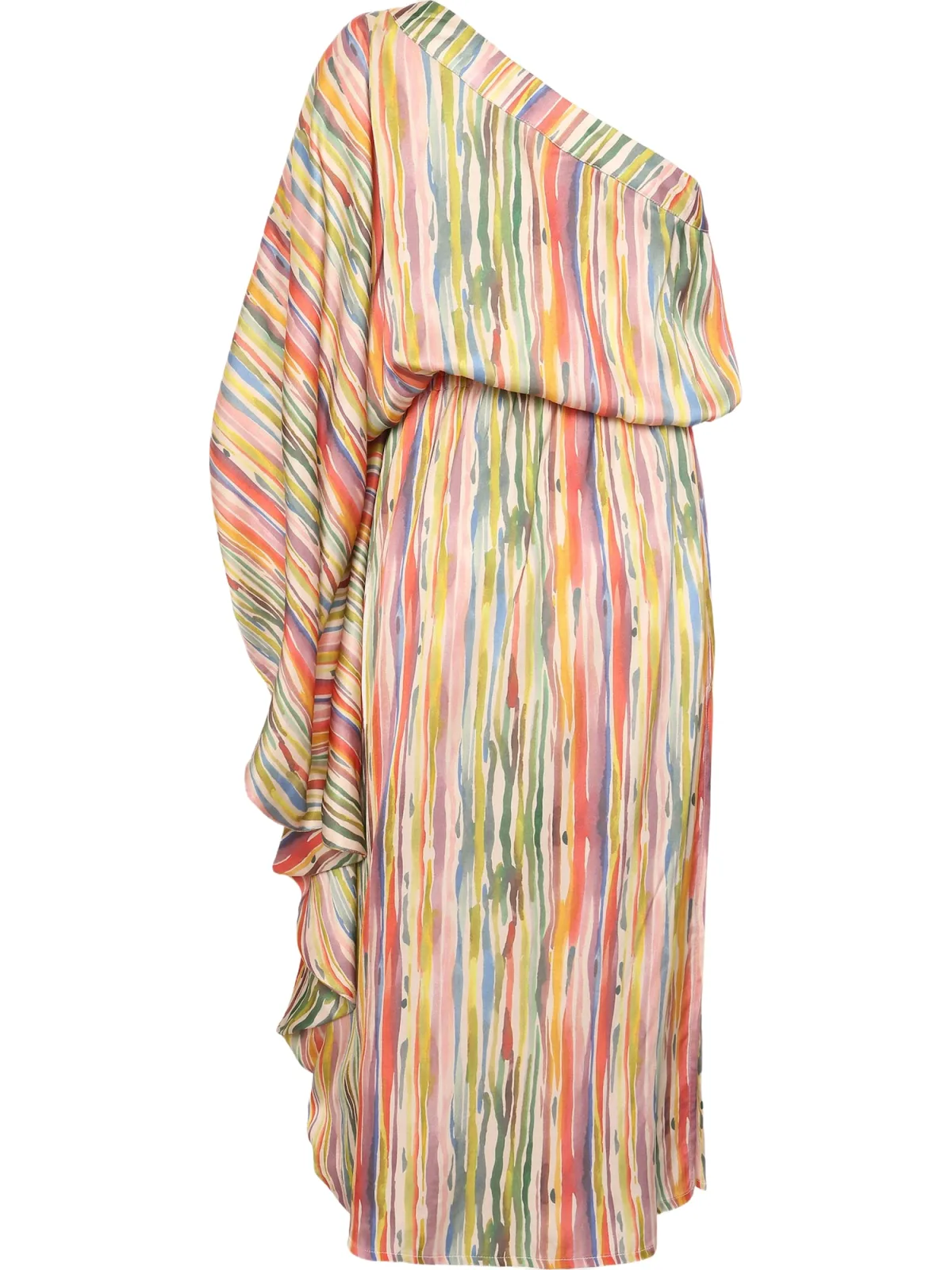 Materiaal: Viscose; Halstype: Carmen hals; Motief: Color-Blocking; Soort bandjes: One-shoulder; Details: Cut-outs; Lengte: 3/4 lengte; Pasvorm: Wijde pasvorm; Armlengte: Halve mouw
