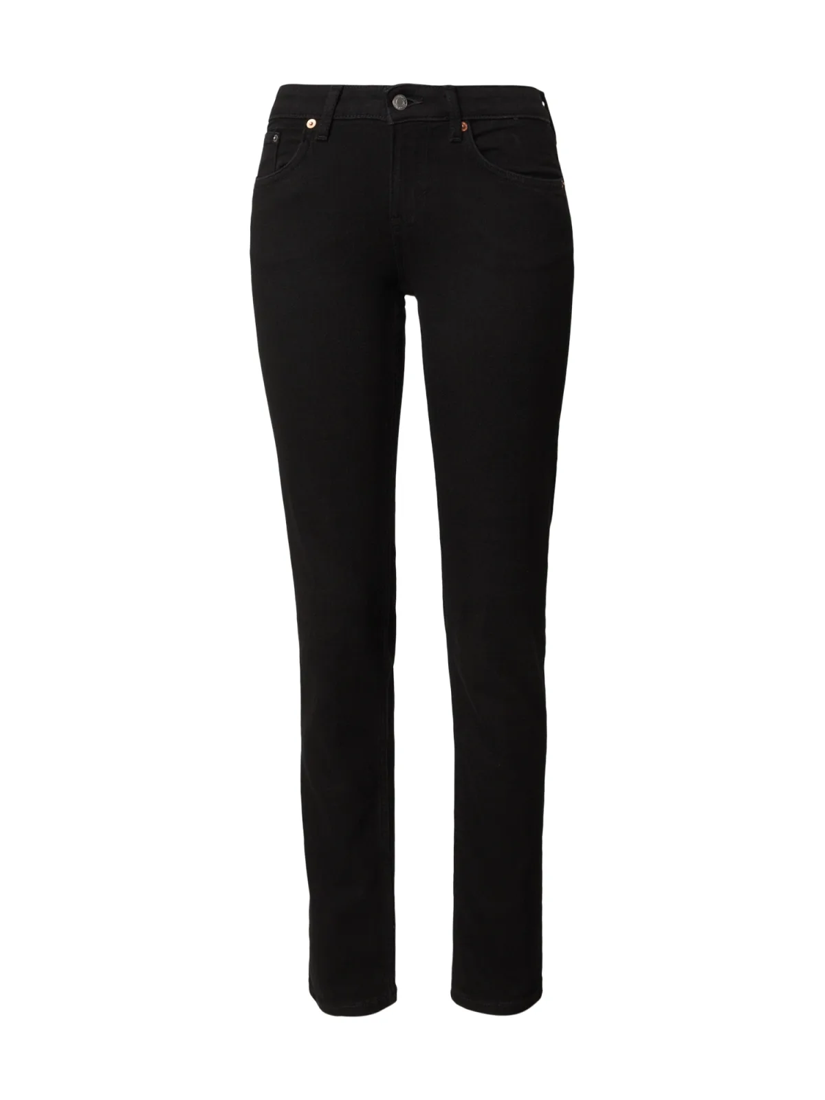 Design: Gevoerde zoom/rand, Ritssluiting, 5-pocket-style; Type sluiting: Ritssluiting; Materiaal: Denim; Motief: Effen; Extra's: Studs, Label patch/label flag, Op staal naden, Riemlussen; Wassing: Colored denim; Lengte: Lang/maxi; Pasvorm: Slimfit; Taillehoogte: Low waist