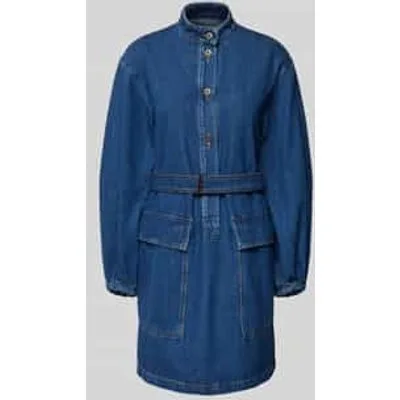 Jeansjurk van Weekend Max Mara;Puur katoen;Recht model;Mini-jurk;Model 'EURO';Opstaande kraag;Korte knoopsluiting;Tailleriem;Ruglengte bij maat 36: 80 cm;Borstomvang bij maat 36: 44 cm;Mouwlengte bij maat 36: 54 cm