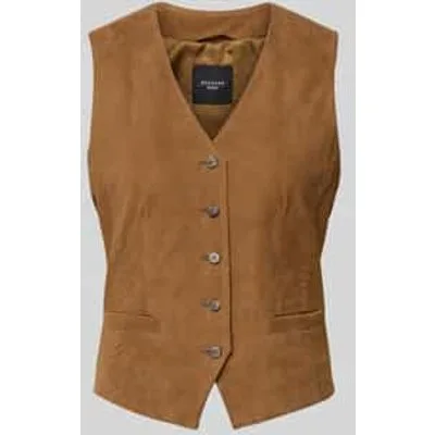 Dames leren bodywarmer van Weekend Max Mara;Model 'Vetusta';look: effen kleuren;Pasvorm: regular fit;hals: V-hals;Sluiting: enkele knoopsluiting;Details: Siernaden;Zakken: strookzakken;materiaal: echt geitenleer