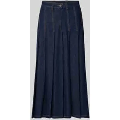 Jeansrok van Weekend Max Mara;Model 'Ovale';Look: Denim;Pasvorm: uitlopend;Lengte: Midi;Applicatie: Labelpatch;Details: Riemlussen, contrastnaden, plooien;Sluiting: Knoop en blinde ritssluiting;Materiaal: puur katoen